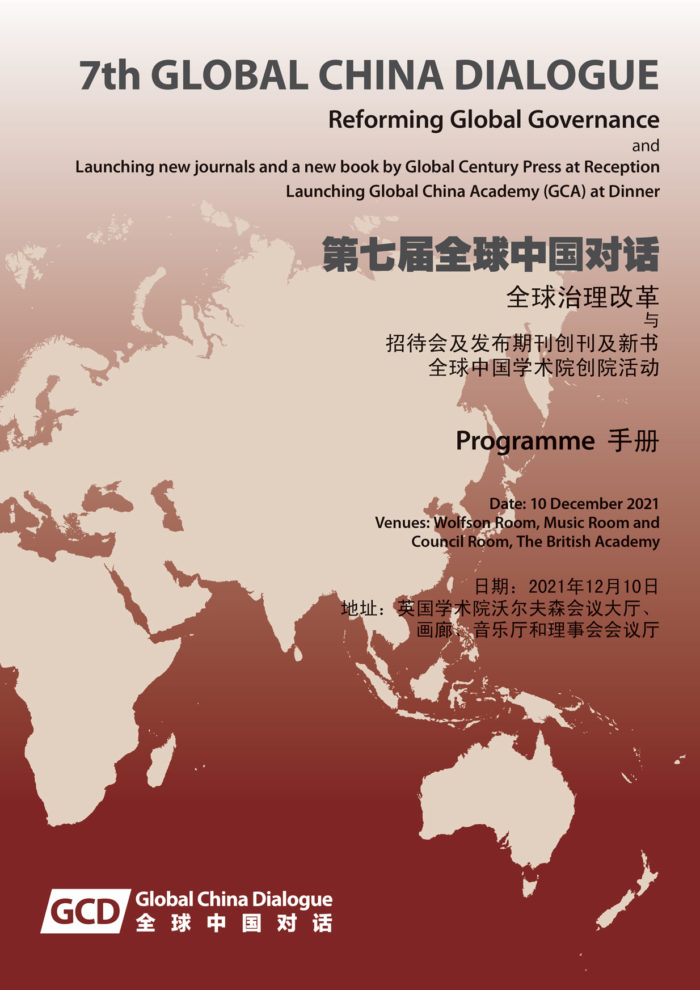 We welcome you to this review of the 7th Global China Dialogue with the theme of Reforming Global Governance, and related activities. It was held at the British Academy on 10 December 10, 2021. The Dialogue consisted of four panels: