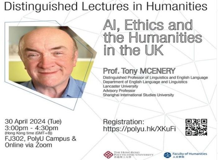 On April 30th, Professor Tony McEnery delivered a Distinguished Lecture in Humanities: ‘AI, Ethics, and the Humanities in the UK,’ at the Faculty of Humanities, The Hong Kong Polytechnic University (PolyU). The lecture surveyed the intersection of artificial intelligence (AI), ethics, and the humanities in the UK. It integrated insights from bibliometric analyses, interviews with various stakeholders, and reviews of existing research infrastructure and policies. The talk examined the current state of AI ethics research in the UK, identifying the contributions of the arts and humanities, the obstacles researchers face, and the potential impacts of their work. It also considered the international research environment and strategic investments made by other countries in AI and ethics, drawing comparisons with the UK’s approach. Opportunities and threats were identified in the contexts of academia, public perception, and commerce, including the impacts of AI on diverse populations and industries. The talk concluded by comparing the situation in the UK with that in Hong Kong.