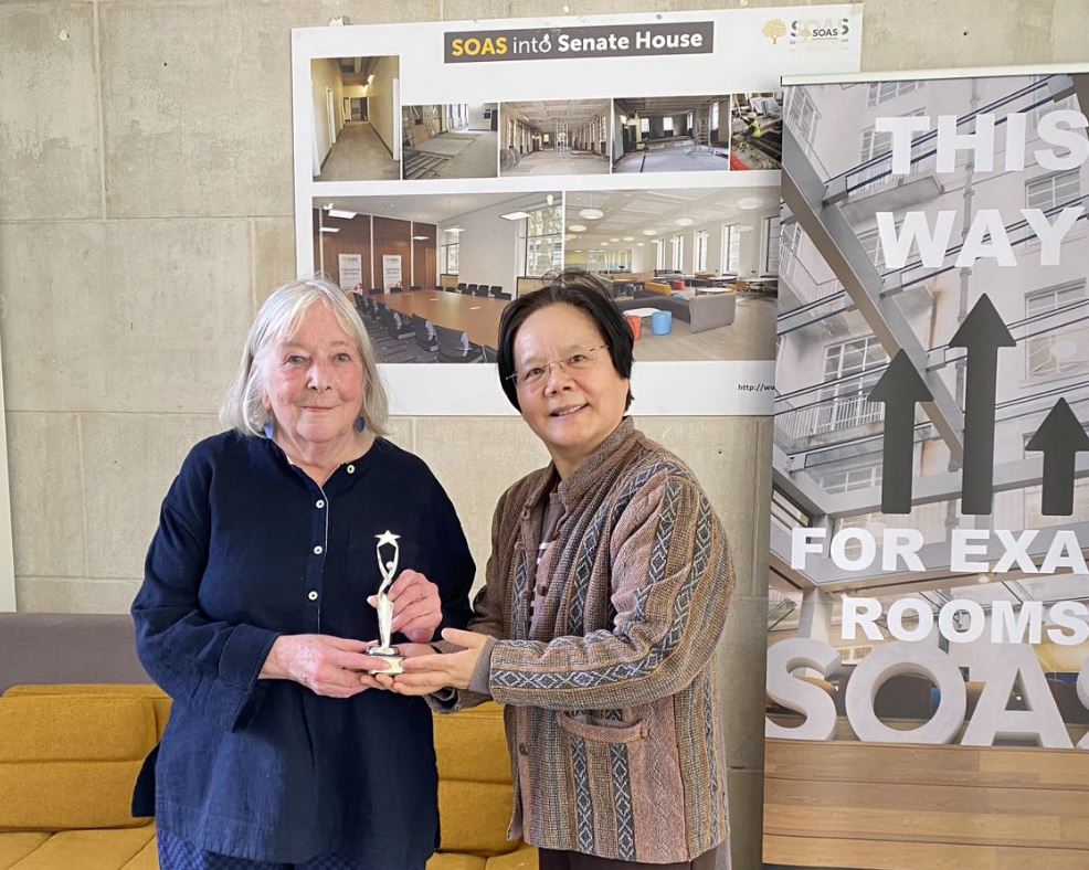 On the occasion of participating in a public lecture entitled ‘The Construction and Development of Digital Dunhuang’ on the 29th of May at SOAS, Professor Xiangqun Chang had a meeting with Dr Frances Wood. She greatly appreciated Dr Wood’s continued support for GCA and GCP with her academic and professional expertise in her personal capacity in the future. Professor Chang expressed gratitude for Dr Wood’s contributions to GCA and GCP in the past years and presented her with an ‘Oscar’ on behalf of the Chair of the Board of Trustees.