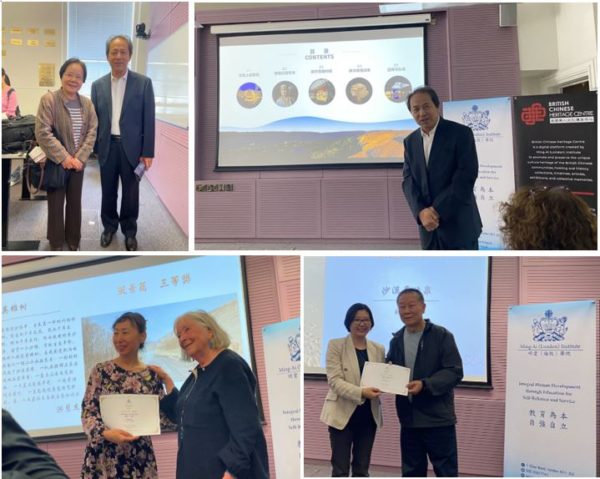 Top left and right: Professor Maria Jaschok, representing the Trustees, thanked the former Chair, Ingrid Cranfield, and presented her with an ‘Oscar’ as a token of their appreciation for her work with GCA and GCP. The former Secretary, Dr. Francis Wood, was unable to attend due to illness. Professor Xiangqun Chang received the ‘Oscar’ on her behalf and will present it to her in due course.
