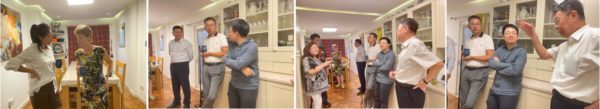 10日下午,朱校长及全家来到学术院的院士之家,受到了热情的接待。以下照片自左至右、自上而下分别是:我对当天的活动进行了简单介绍;朱校长向学术院赠送了礼品。他表示,这是天津杨柳青的“莲年有余”年画【注释2】,愿它为全球中国学术院带来美好的祝愿。接着,赵可金教授分别向我和学术院信托会前主席、环球世纪出版社社长Ingrid Cranfield 赠送了小礼品。