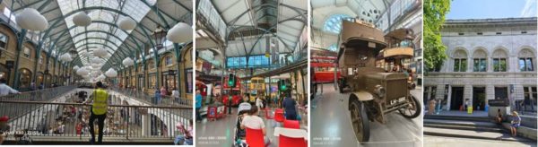 学术院安排在牛津负责接待的是住在牛津的伦敦大学学院博士候选人程语桐(上排照片右数第一张,左边第一位)。她于7月28日下午两点在阿什莫林博物馆门前与我们几位老师会面。在一起参观完博物馆后,我们一起找到了去赵老师夫妇下榻的酒店的6号线公交车站(下拍照片左一)。由于语桐告知30日去伯明翰的铁路罢工,于是我们一起到长途汽车站协助赵老师买好了去伯明翰的车票。之后,语桐陪他们一起参观了牛津的著名地标,包括圆顶图书馆和Bodleian Library。又前往Cover Market,在那里一边闲逛,一边交流。