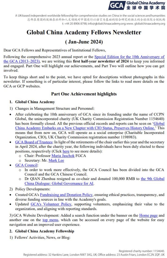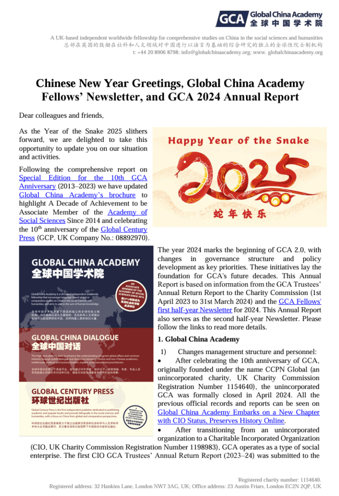 Chinese New Year Greetings, Global China Academy Fellows’ Newsletter and GCA 2024 Annual Report