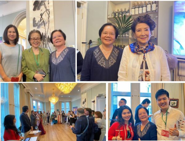 Top left: Xiangqun Chang and Yu Li with Xinran (middle), the founder of MBL. She was one of the panelists at the 1st Global China Dialogue in 2014. Top right: Xiangqun Chang with Jung Chang, author of Wild Swans (1991), Mao: The Unknown Story (2005), and Empress Dowager Cixi (2013). Bottom left: Pu Zhang hosted the auction. Bottom right: Xiangqun Chang met Fellows of The Sociological Review, Dr. William Zhengdong Hu and his wife, who were volunteers there.