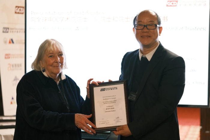 Dr Frances Wood (吴芳思), a Trustee of the Global China Academy Board of Trustees and former Curator of Chinese Collections at the British Library, presented certificates to GCA Fellows and Associate Fellows.
