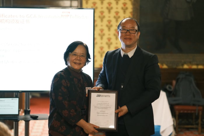 Professor Xiangqun Chang (常向群) FRSA, FGCA, President of the Global China Academy, presented certificates to GCA Institutional Fellows: