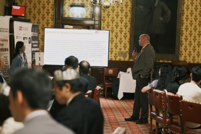 - Presentation of certificates, reading greeting messages & watching videos from absent GCA Fellows and GCD 8 speakers, Professor Tony McEnery 托尼·麦肯尼教授 FAcSS FRSA FGCA and Chair of Global China Academy Council, Council Member of the Academy of Social Sciences, Distinguished Professor of English Language and Linguistics at Lancaster University (right in photo)
