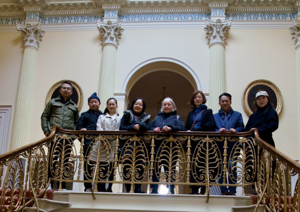 第二天,2月4日,我们的团队参观了布洛克特庄园。我们有幸与历史学家和汉学家吴芳思Frances Wood博士同行,她曾是大英图书馆中文部主任,也是全球中国学术院的信托人,还有剑桥大学菲茨威廉博物馆亚洲艺术藏品的负责人詹姆斯·林博士。在他们的知识和见解的指导下,我们走访了庄园内的几乎每一个房间,仔细观察了家具、绘画和各种收藏品。之后,我们穿过绿意盎然的田野,沿着湖泊和桥梁旁的树木漫步。