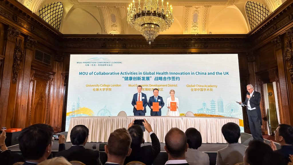 On the occasion of the Wuxi Municipal People’s Government delegation’s visit to the UK, the Global China Academy (GCA) engaged with Wuxi and the UCL Global Business School for Health (GBSH) for collaboration. The Wuxi (London) Promotion Conference, co-organizer by China-Britain Business Council (CBBC), was held on the 9th of August 2023 at the Four Seasons Hotel. With support from UCL Global Engagement, the Memorandum of Understanding (MOU) among the three parties was signed successfully.