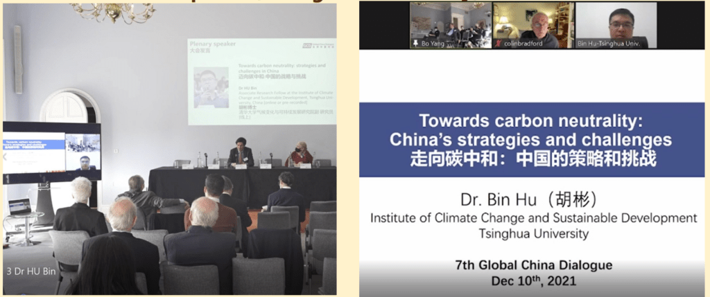 The last contribution in this panel was a speech delivered online by Dr HU Bin, Associate Research Fellow at the Institute of Climate Change and Sustainable Development, Tsinghua University, China. The topic was Towards carbon neutrality: strategies and challenges in China