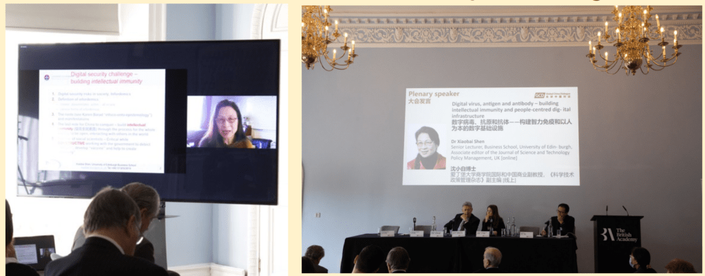 Dr Xiaobai Shen, Senior Lecturer, Business School, University of Edinburgh, UK, presented his speech online. The topic was Digital virus, antigen and antibody: building intellectual immunity and people-centred digital infrastructure