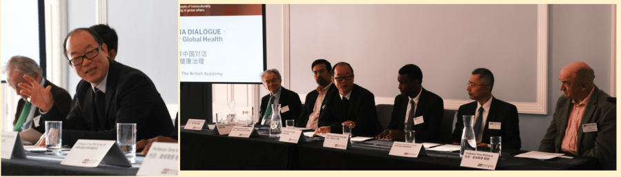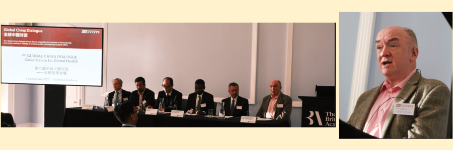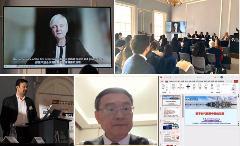 2.1. Global Governance and Health: Navigating the Complex Landscape, Professor Nora Colton (top left) 诺拉·科尔顿教授视频, Director of UCL Global Business School for Health (online greeting, the presentation was delivered by Professor Colton’s colleague Professor Kabir Sheikh (bottom left) 卡比尔·谢赫教授代读, UCL GBSH)