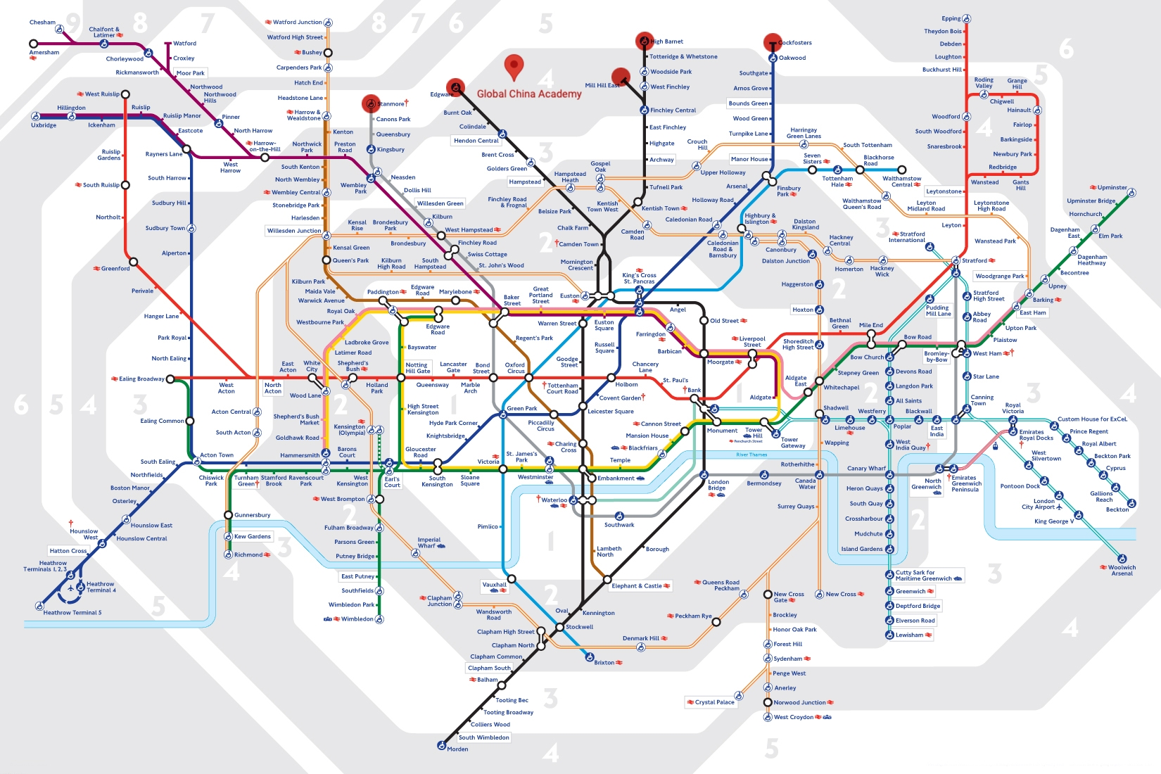 Click here to see official rail and tube map; Click here to see a tube map with marks for related local stations to GCA Centre or Fellows’ Home.